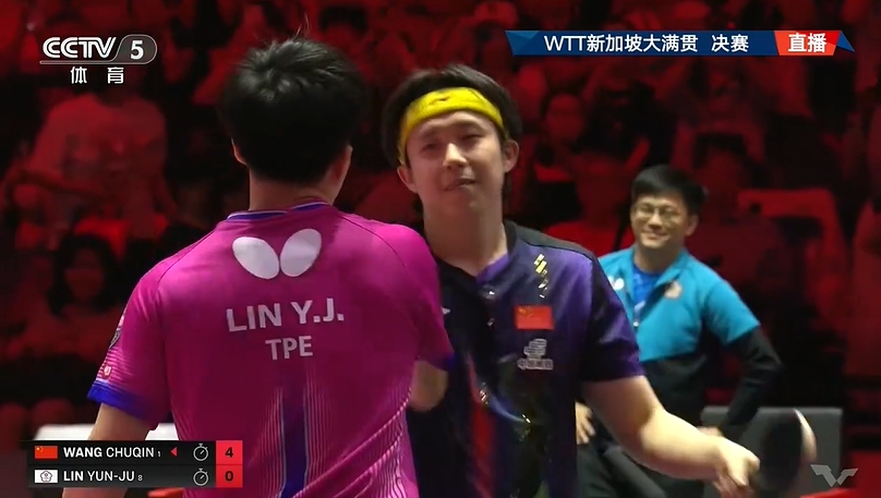 直播吧03月01日讯 WTT新加坡大满贯男单决赛,王楚钦击败林昀儒夺冠,近3年2次夺得该赛事冠军。首次晋级WTT大满贯单打决赛的林昀儒收获亚军。