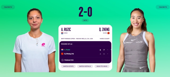 克罗地亚选手鲁季奇首次跻身印第安维尔斯站32强,第三轮她将对阵13号种子穆霍娃。