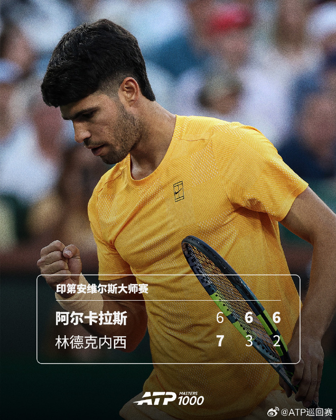 阿尔卡拉斯对林德克内希保持6战全胜、豪取新赛季14连胜、连续五年挺进赛会16强。