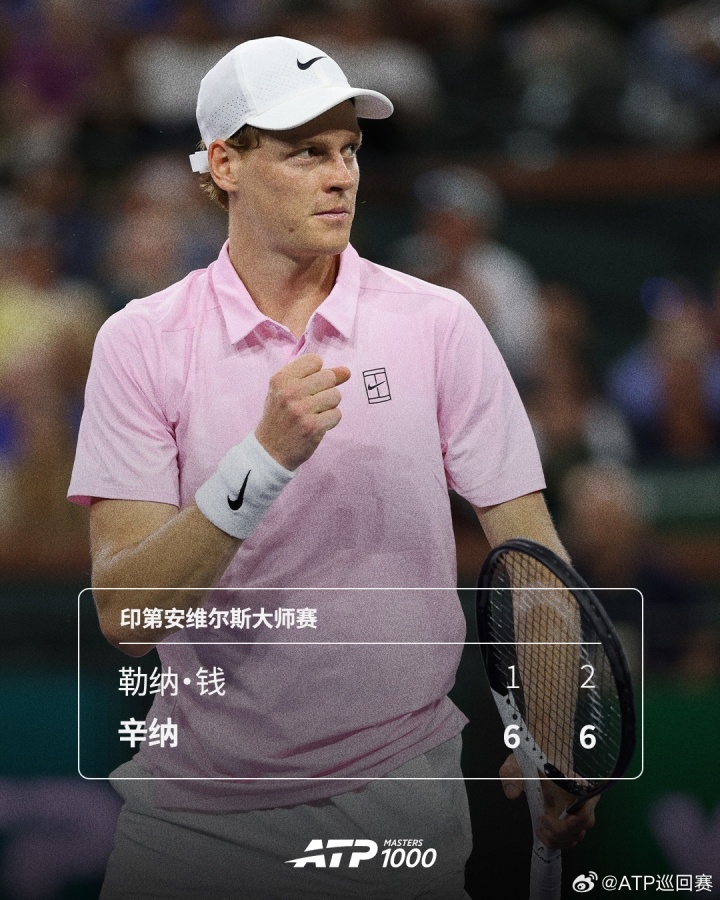 这是辛纳大师赛第98胜,也是他职业生涯第400胜。