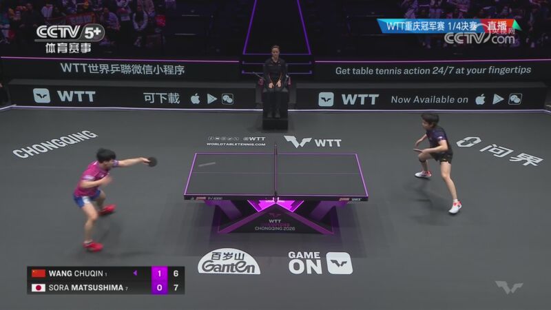 直播吧03月14日讯 2026WTT重庆冠军赛男单1/4决赛,王楚钦对阵日本选手松岛辉空。经过六局较量,王楚钦2-4负于松岛辉空,无缘四强。