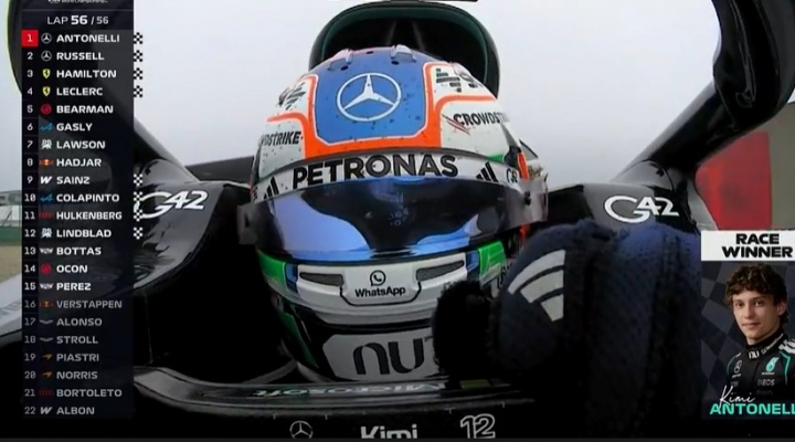 19岁安东内利杆位发车夺冠,成为第二年轻的大奖赛夺冠车手(仅次于维斯塔潘18岁夺冠)。