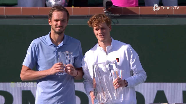 直播吧03月16日讯 ATP1000印第安维尔斯大师赛男单决赛,辛纳在第二盘抢七0-4后连下7分,以7-6(6) 7-6(4)击败梅德韦杰夫,取得大师赛第100胜,首次在本站夺冠。