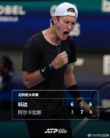 32号种子科达把握住第二个发球胜赛局,以6-3 5-7 6-4战胜头号种子阿尔卡拉斯,职业生涯首次击败NO.1,第三次跻身赛会16强。阿尔卡拉斯则吞下本赛季第二场失利。