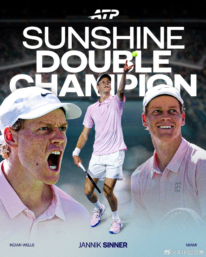 直播吧03月30日讯 ATP1000迈阿密站决赛,2号种子辛纳 6-4 6-4战胜21号种子莱赫奇卡,对后者四战全胜,携12连胜夺得“阳光双冠”,这也是他的第7个大师赛冠军、第26个单打冠军。