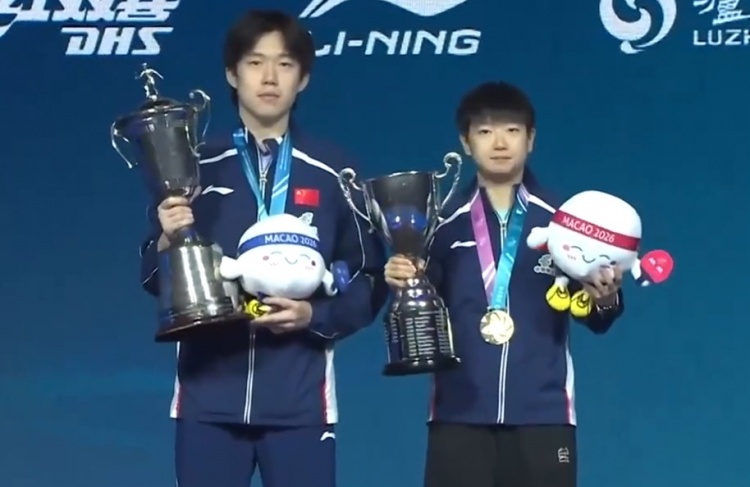 国际乒联表示,孙颖莎捧的是女子世界杯奖杯“哈马隆德杯”,她以4-1战胜王曼昱达成史无前例的世界杯女单三连冠。王楚钦捧的是男子世界杯奖杯“埃文斯杯”,为其职业生涯首夺该奖杯。