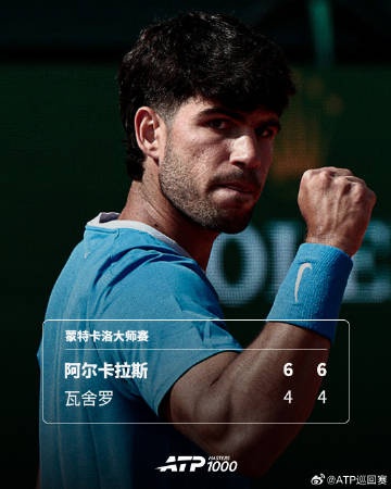 直播吧4月11日讯 ATP1000蒙特卡洛大师赛半决赛,阿尔卡拉斯2-0瓦舍罗晋级决赛。