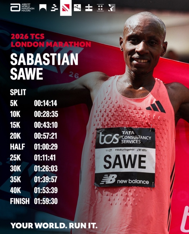 直播吧04月26日讯 世界田联消息,伦敦马拉松男子精英组,肯尼亚选手萨巴斯蒂安·萨维在最后阶段甩开生涯首马的科杰尔查,跑出惊人的1小时59分30秒,打破基普图姆保持的世界纪录,成为人类历史上第一位在两小时内跑完马拉松正赛的选手!