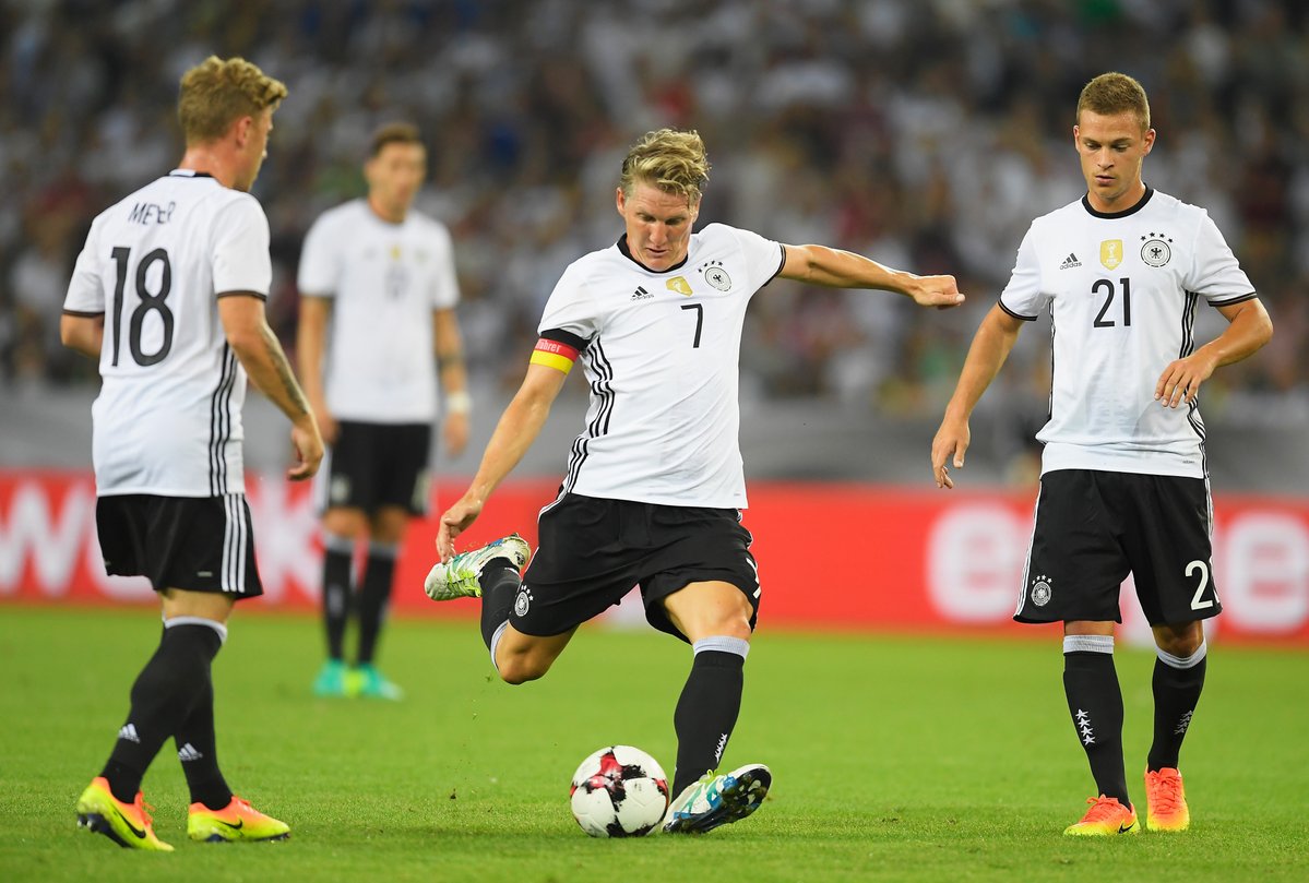 本场比赛是德国传奇中场巴斯蒂安-施魏因斯泰格的国家队告别赛,他将最后一次身着德国战袍、臂戴袖标为国家队出战。此番3位在里约拿到奥运男足银牌的国奥球员,布兰特和迈尔都已完成德国队处子秀,高大中卫具勒迎来国家队处子秀。