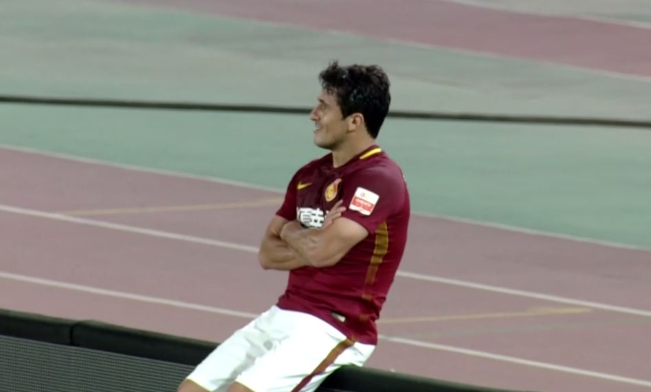 比赛第64分钟,阿洛伊西奥的进球帮助华夏反超了比分,进球后的阿洛伊西奥座到了广告牌上,实力cosC罗。