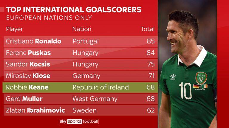 2010年世界杯预选赛附加赛,爱尔兰对阵法国,基恩的进球几乎让他们踏入世界杯,然而只是输给了亨利的争议手球。他为爱尔兰队打进了68粒进球,是历史射手榜第一,而身后的奎因仅有21球在册。