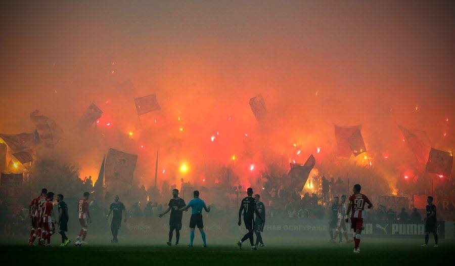 赛前双方球迷就惊动警方,在比赛中狂热的球迷更是点燃冷焰火,球场宛如战场。