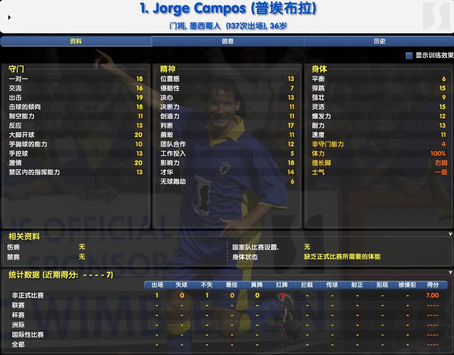 这样的身高想当门将,在小学生联赛还差不多!坎波斯职业生涯早期听到这样的劝慰最多,为了继续职业道路,他只有暂时性的放弃自己的门将梦,以一名“小快灵”前锋出道。1988年,坎波斯首次代表母队墨西哥美洲狮队亮相时,踢的正是球队前锋。