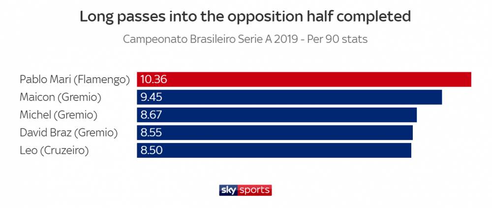 在巴甲联赛中,没有任何一名球员能够如同巴勃罗-马里那样,更频繁地、成功地长传球到对方半场。他能够帮助球队获得控球权——从他87.8%的传球成功率就能够看出这一点——而且他在分配球权方面也有着极强的想象力。巴勃罗-马里的传球也为弗拉门戈的比赛增添了不同的元素。他几乎一半的传球是向前传递。