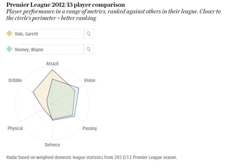 2012-13赛季,贝尔和鲁尼的球员雷达对比