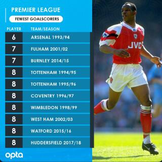 图5:只有6人取得英超进球,阿森纳进攻端的问题可见一斑