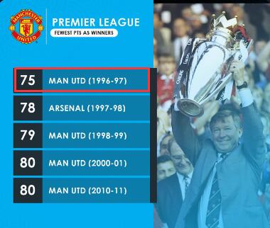 图3:曼联75分加冕,是英超历史上最低的夺冠分数