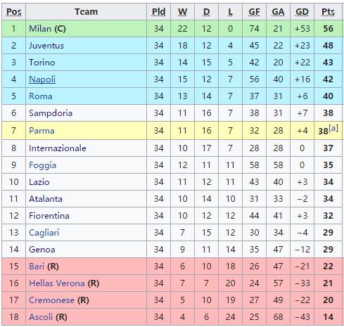 在两次面对拥有马拉多纳的卫冕冠军那不勒斯时,米兰踢出了纯粹的足球,用一个4比1和一个3比2完成双杀,最终3分优势力压对手登顶——这是一个划时代的冠军,它结束了假球降级后米兰近十年的积弱,9年来的第一个联赛冠军加上里杰卡尔德的加盟,让红黑军团有底气去追逐更远大的梦想。