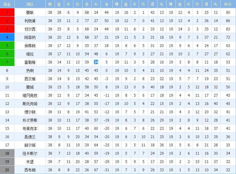不过,此后球队的表现较为稳定,最终实现了对维拉的反超,提前确保拿到第四。