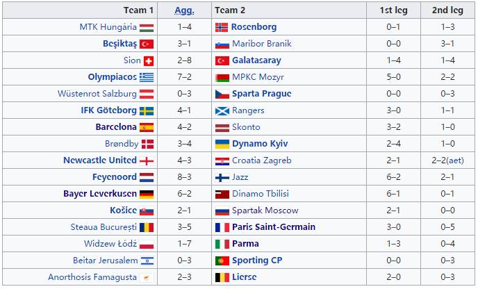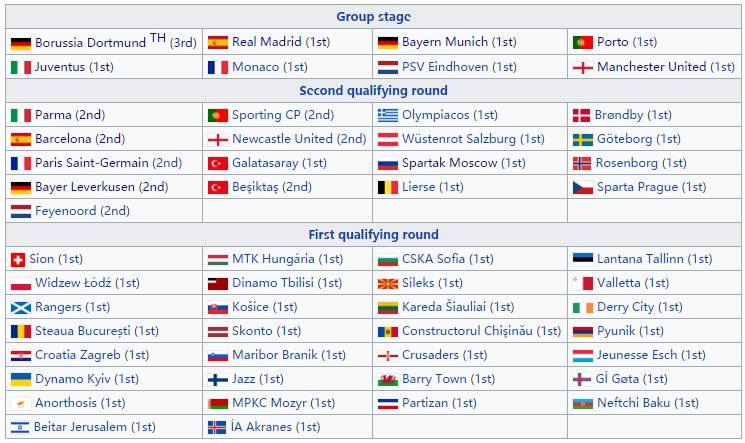 虽然当时欧足联排名前八联赛的冠军都获得了欧冠准入资格,但亚军(土超是冠亚军)要从附加赛第二轮打起,不过对于大联赛球队来说这并不是难题,他们全部过关,除了少数球队遭遇抵抗,轻松晋级才是主流:加拉塔萨雷8比2横扫瑞士冠军锡昂,帕尔马7比1羞辱波兰冠军罗兹,费耶诺德8比3击溃芬兰冠军谢斯波利,勒沃库森6比2碾压格鲁吉亚冠军第比利斯迪纳摩……