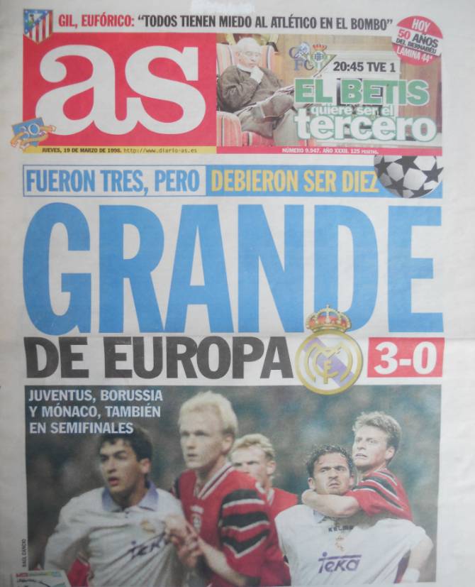 1993年至1998年,意甲球队连续六年杀入欧冠决赛,却只拿到两个冠军,尤文又一次成为了奖杯后的背景板,因为他们遇见了欧冠之王皇马。