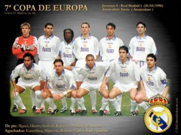 1997/98赛季欧冠,皇马与波尔图、罗森博格和奥林匹亚科斯同组,他们以小组第一强势出线,此后便有了上文所述连续淘汰德甲球队的戏码。冬季加盟球队的曼托瓦尼是绝对的英雄,他在1/4决赛和半决赛打进3球,助力球队一马平川。不管怎样,欧冠之王回到了欧冠决赛的舞台,他们要找回那遗失已久的荣耀。
