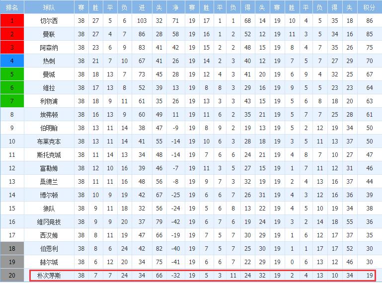本赛季的三支降级球队是朴茨茅斯、赫尔城与伯恩利。由于俱乐部财政问题,朴茨茅斯被扣掉了9分,这在很大程度上已经“宣告”了他们的降级。即便是加上这9分,他们整个赛季也只拿到了28分,依然是倒数第一。