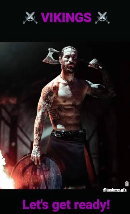 >真的该刮胡子了,拉莫斯将自己秀肌肉照片P成维京战士