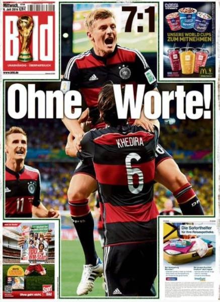 最终比赛结束,巴西在主场历史性地1比7惨败德国,无缘决赛。那场比赛担任巴西队长的大卫-路易斯6年后回忆起这场比赛,表示全队在0比3落后之后已经懵了:“我们都不太习惯丢掉2、3球,那时候大家在场上开始有些沮丧地走动,正是注意力不够集中,让我们彻底输掉了比赛。突然之间,情况急转直下,你可是在巴西本土踢球,必须得赢下,但是你却很快丢掉了第一个球、第二个球、第三个球。这场比赛每一个方面都出了问题。”
