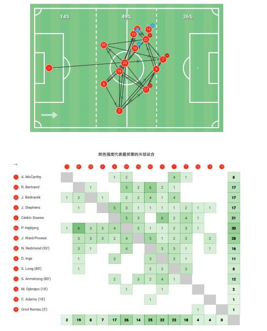 但是霍伊别尔并不是很多分析所说的“防守型中场”,在防线前主干脏活累活。球员的进攻能力同样出色,身为南安普顿的用球核心,霍伊别尔有非常稳定的脚法,各种距离、类型的传球都能很好的完成。
