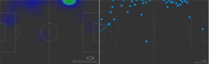 图2:丹布罗西奥本场比赛的热图与触球数据