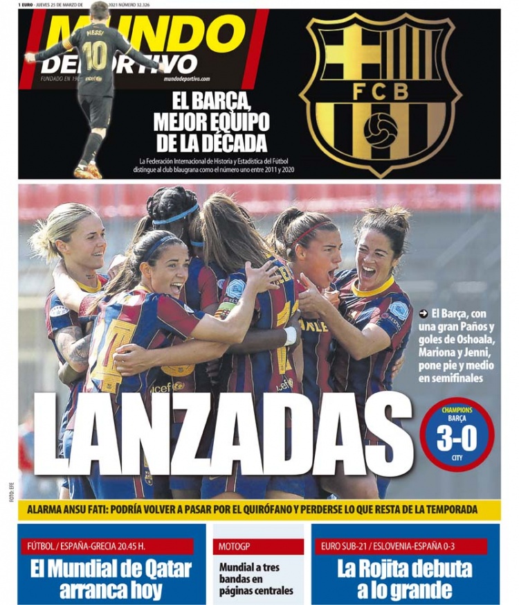 1、“巴萨,近10年的最佳球队”,足球历史统计协会列出了2011年-2020年的世界最佳俱乐部排行榜,巴萨高居第一。