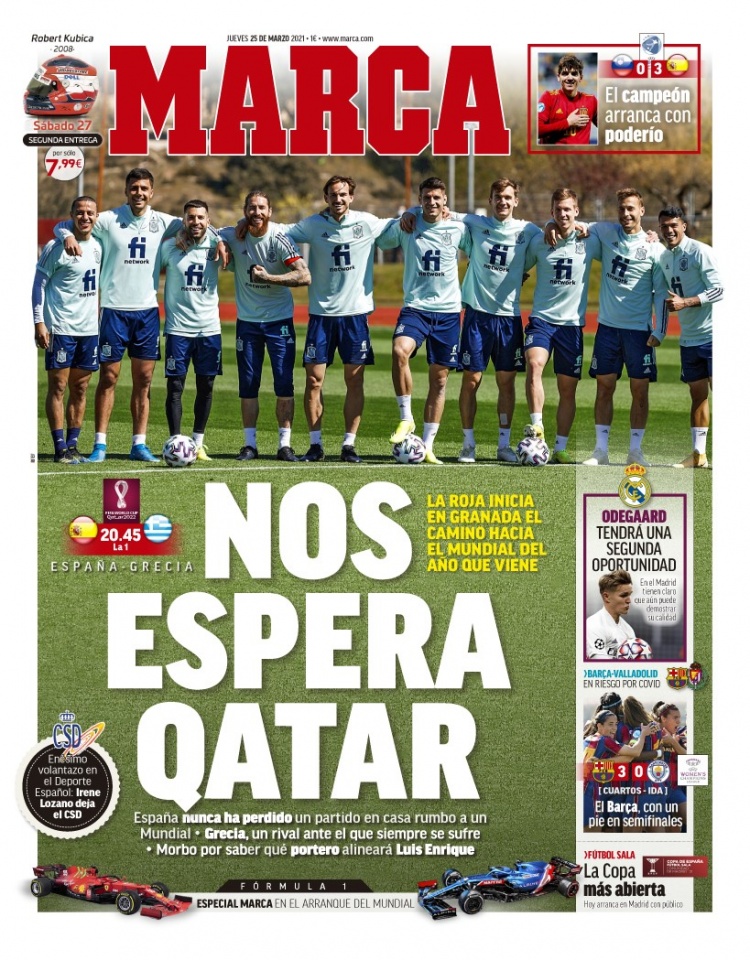 1、“奔向2022卡塔尔世界杯的起点”,西班牙将在今晚主场与希腊交手,开启冲击世界杯的道路,杰拉德-莫雷诺伤缺,波罗剑指首发。