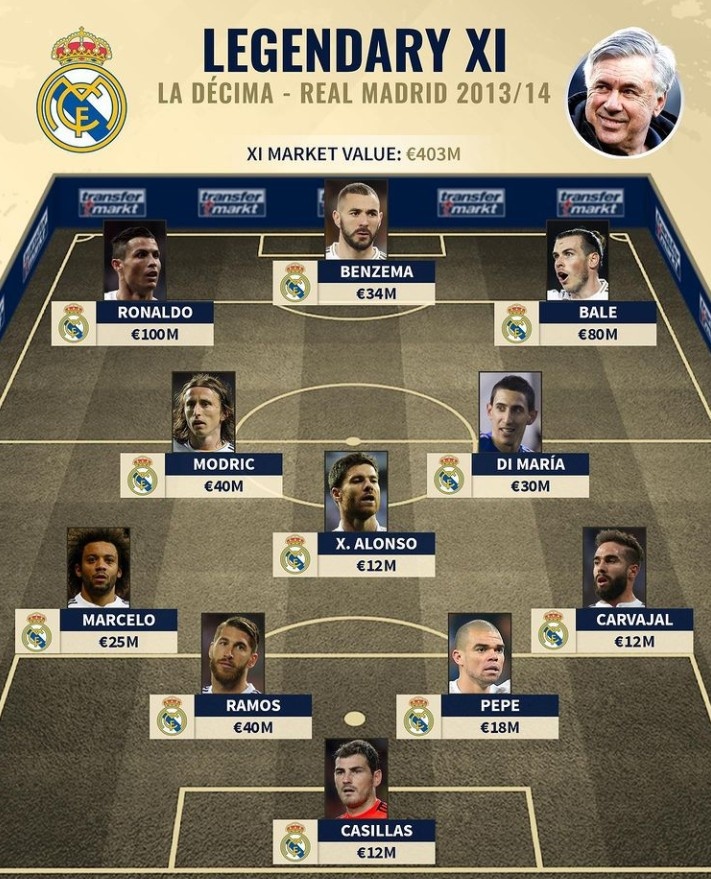 德转2013-14安切洛蒂的皇马阵容(欧元):