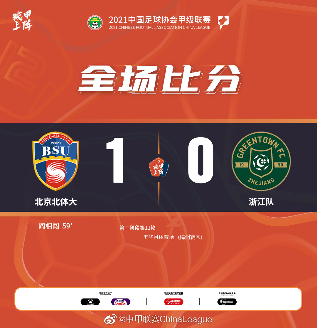 第59分钟,北体大打破僵局,阎相闯边路拿到长传球过掉王暘,突入禁区后推射远角破门,北京北体大1-0浙江队。↓