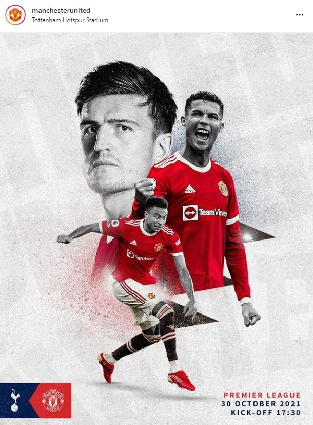 直播吧10月30日讯 北京时间10月31日星期日00:30,英超第10轮热刺对阵曼联。曼联发布了这场比赛的赛前海报,最近球队的三个话题性球员C罗、马奎尔以及林加德作为封面人物出现。
