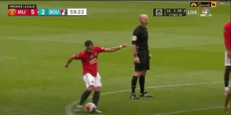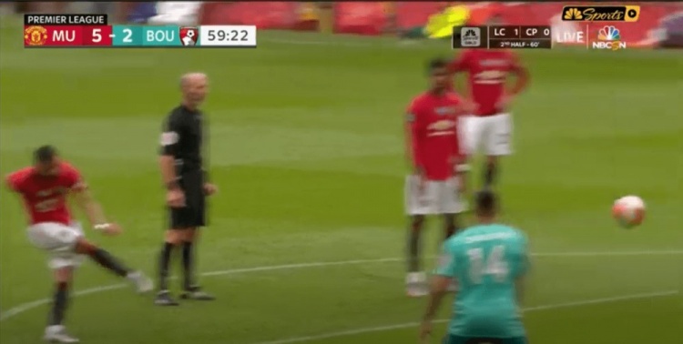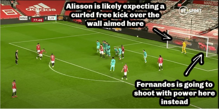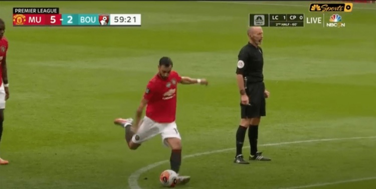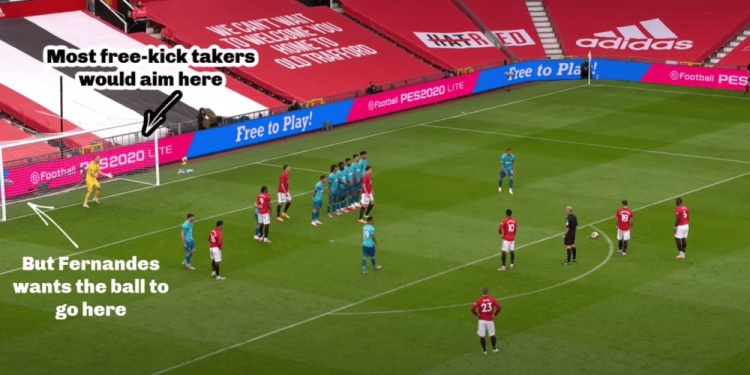 当所有人都觉得布鲁诺-费尔南德斯会瞄准近门柱位置之时,他再一次让人感受到了意外。