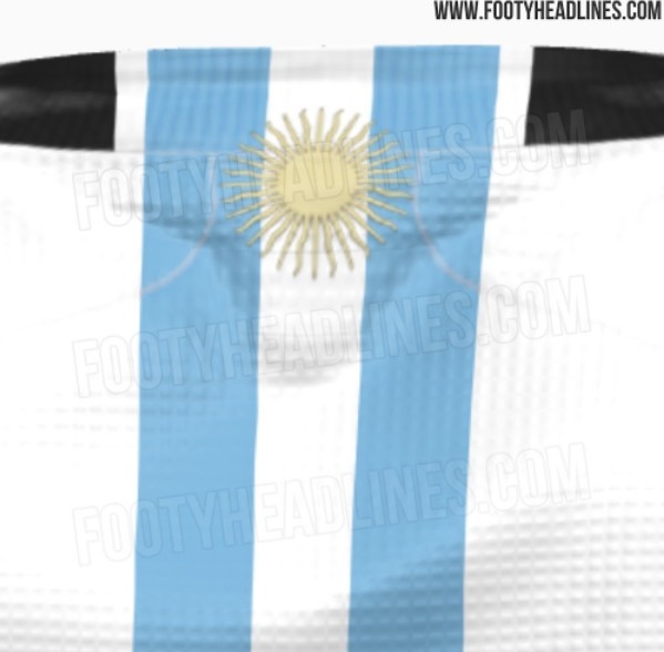 从曝光的谍照来看,阿根廷的卡塔尔世界杯主场球衣正面仍采取阿根廷国家队经典的蓝白条纹设计,而包括衣领、袖口以及阿迪达斯logo等多个地方出现黑色元素。
