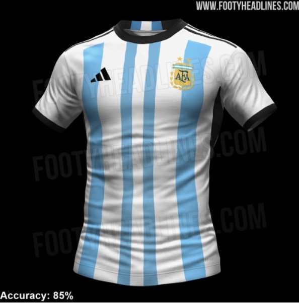 直播吧4月5日讯 足球装备网站footyheadlines曝光阿根廷世界杯主场球衣,这件球衣仍采取经典蓝白条纹设计。