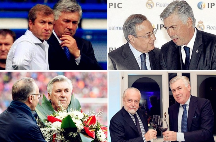 经历了执教帕尔马和尤文图斯时期的挫折,安切洛蒂的职业生涯从米兰内洛开始进入快车道。2002/03赛季,安切洛蒂带领AC米兰击败老东家尤文图斯登顶欧冠,在随后的赛季中收获了投身教坛之后的第一个联赛锦标。在为红黑军团带来第二座欧冠奖杯之后,安切洛蒂接受了阿布拉莫维奇的邀请,前往斯坦福桥淘金。2009/10赛季,切尔西以38场103球、六场通杀Big4对手的彪炳战绩夺得英超冠军,安切洛蒂为这支以铁血著称的球队带来了期待已久的“美丽足球”。
