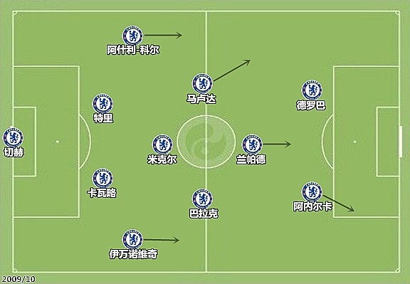 38轮联赛打进103球,六场通杀Big4对手,切尔西在2009/10赛季展现出的强度攻击力令人咋舌。麾下球员还是“穆一期”的班底,却取得了截然不同的战果,安切洛蒂在蓝军的冠军赛季中将其看人下菜的本领发挥到了极致。转战法甲期间,安切洛蒂敏锐觉察到了战术风向的变化,建队时不再依赖于10号球员和菱形架构,开始给予边锋和B2B中场更多的关注,这为其后来在皇马取得的成功奠定了基础。