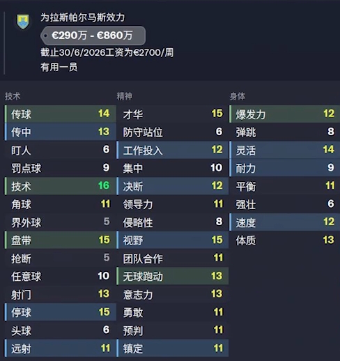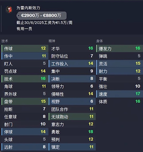 潜力:-9 德转身价:1500万欧