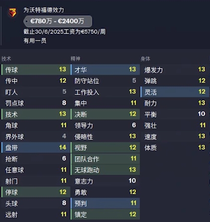 潜力:-9 德转身价:250万欧