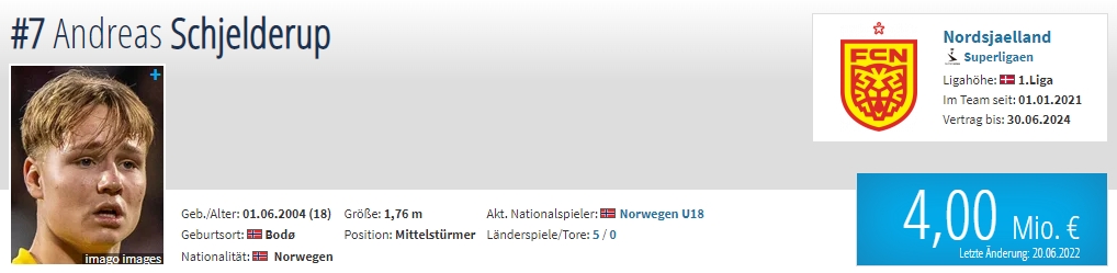 年龄:18岁 国籍:挪威 现效力球队:丹麦超球队北西兰