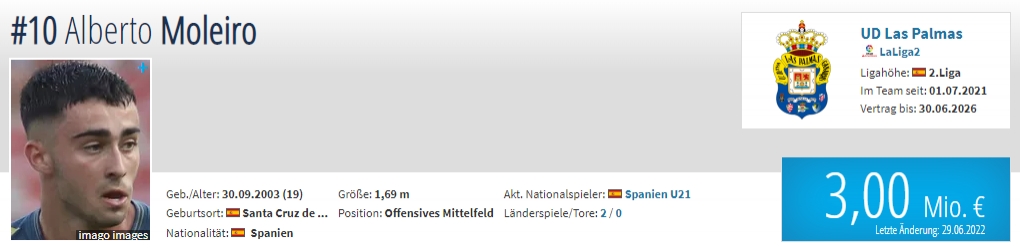 年龄:19岁 国籍:西班牙 现效力球队:拉斯帕尔马斯