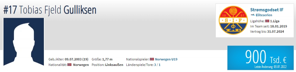 年龄:19岁 国籍:挪威 现效力球队:挪超球队斯托姆加斯特