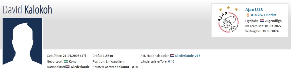 年龄:19岁 国籍:荷兰 现效力球队:阿贾克斯U18