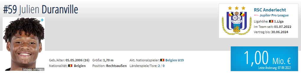 年龄:16岁 国籍:比利时 现效力球队:安德莱赫特