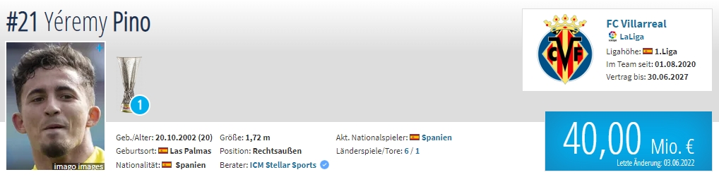 年龄:20岁 国籍:西班牙 现效力球队:比利亚雷亚尔