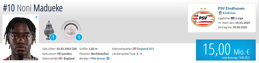 年龄:20岁 国籍:英格兰 现效力球队:埃因霍温